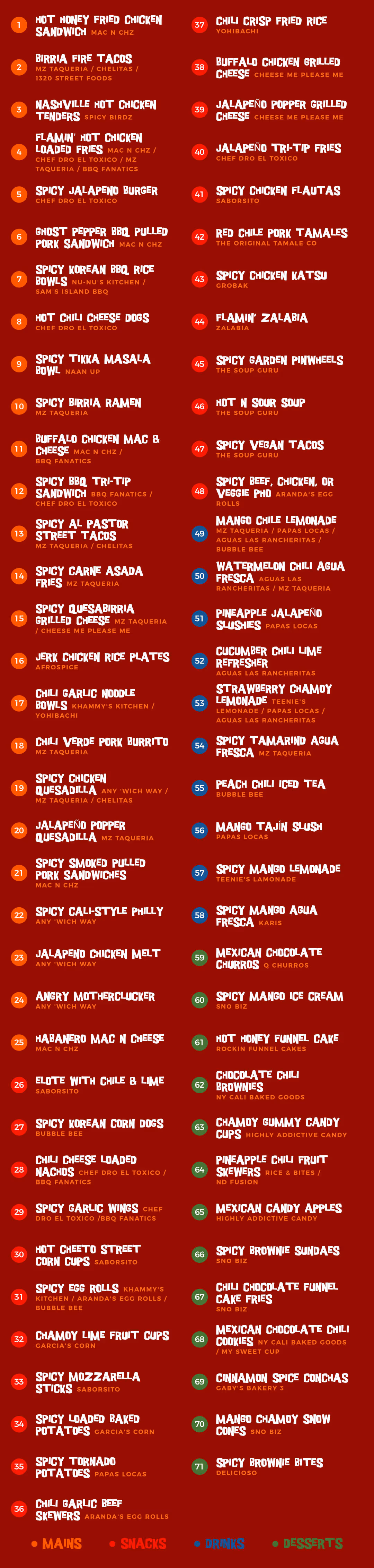 Turn up the heat at River Park Farmers Market! Whether you're a mild enthusiast or a spice warrior, our food trucks are serving up dishes across the entire heat spectrum. From gentle flavors to scorching sensations, test your taste buds and find your perfect level of spice.