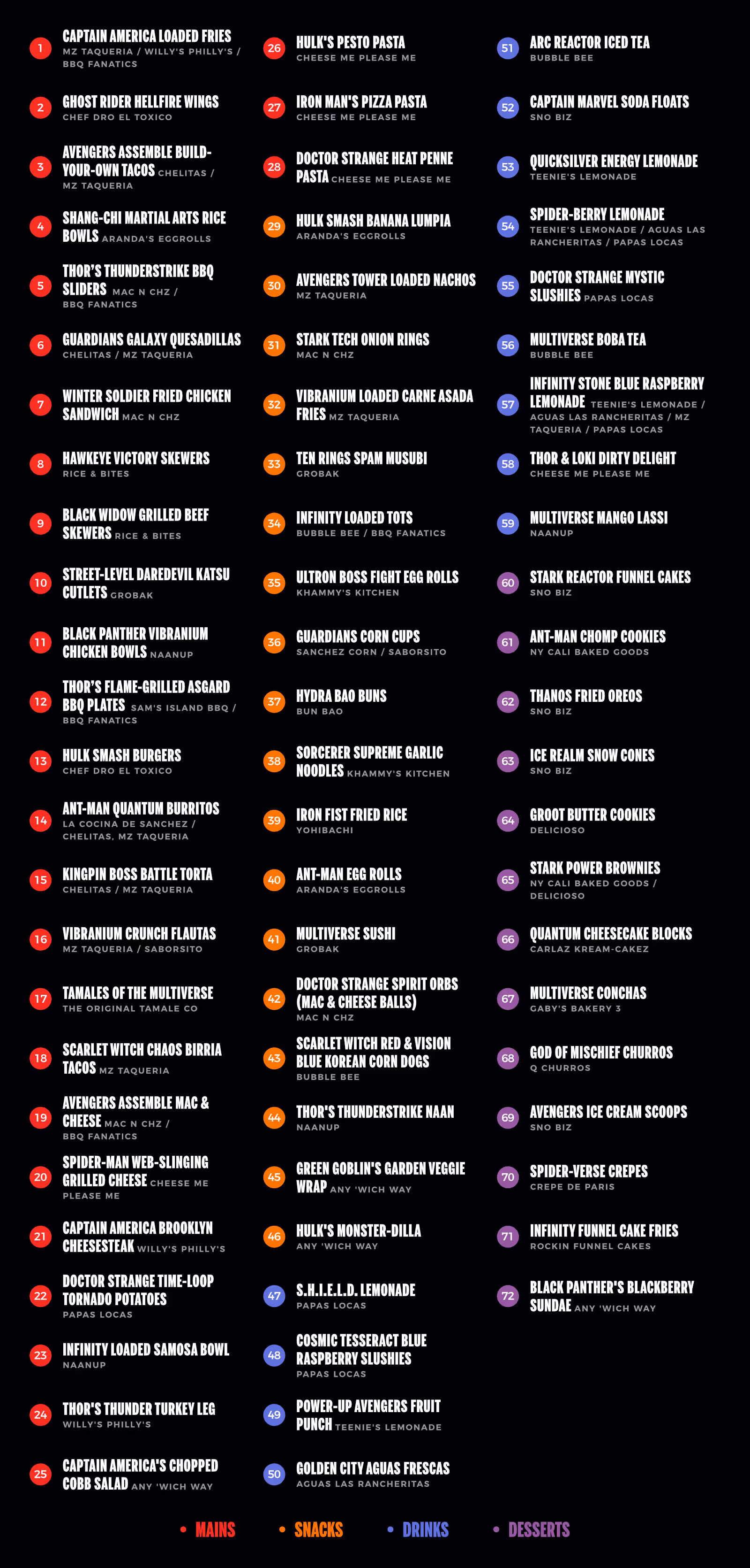 Assemble for a heroic night of epic eats! Our food trucks are bringing superhero-sized flavors with Marvel-inspired menu items that pack a punch. From New York street food favorites to cosmic creations, discover dishes worthy of Earth's Mightiest Heroes at River Park Farmers Market.