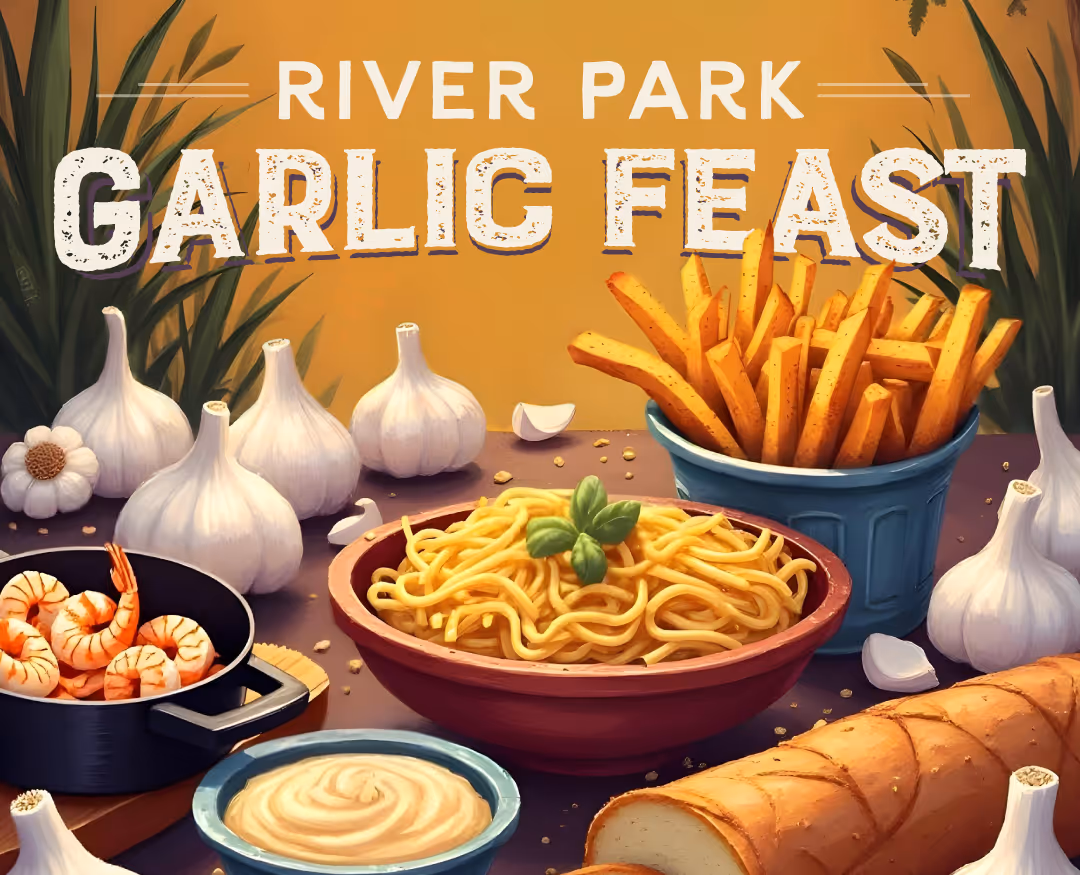 Join us for the River Park Garlic Feast! Celebrate garlic with local vendors offering delicious food at River Park Shopping Center.
