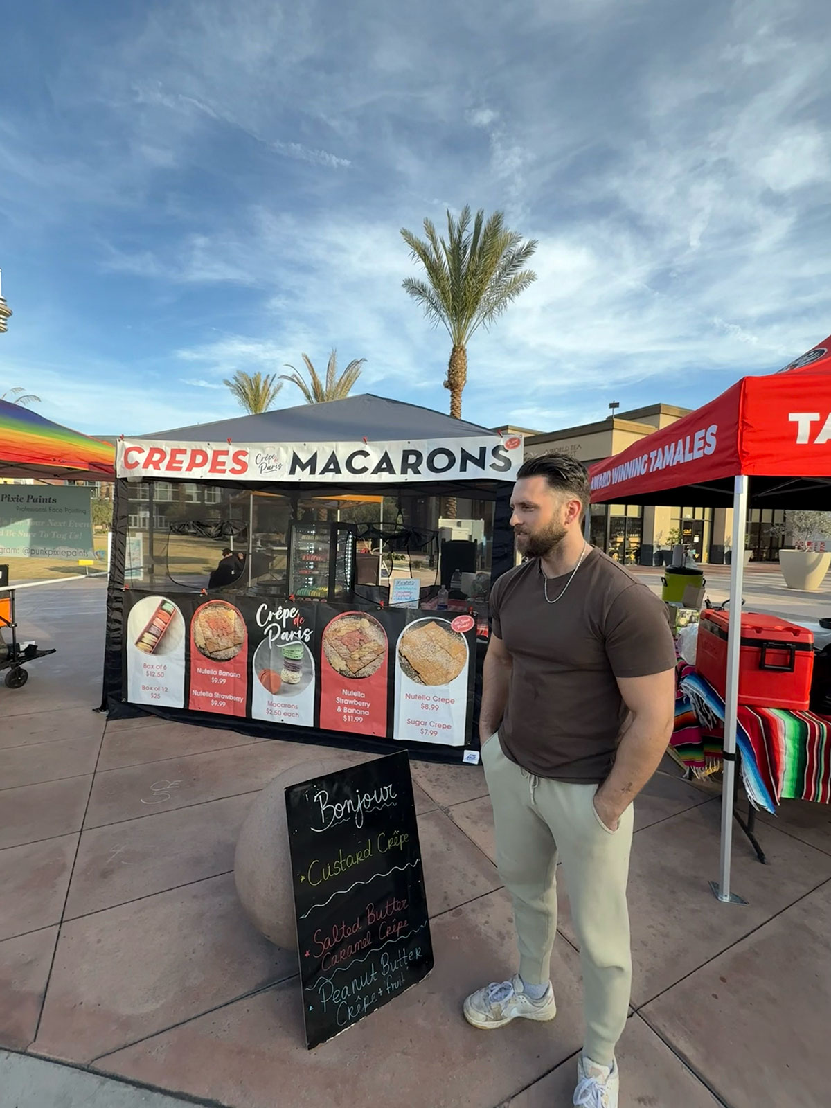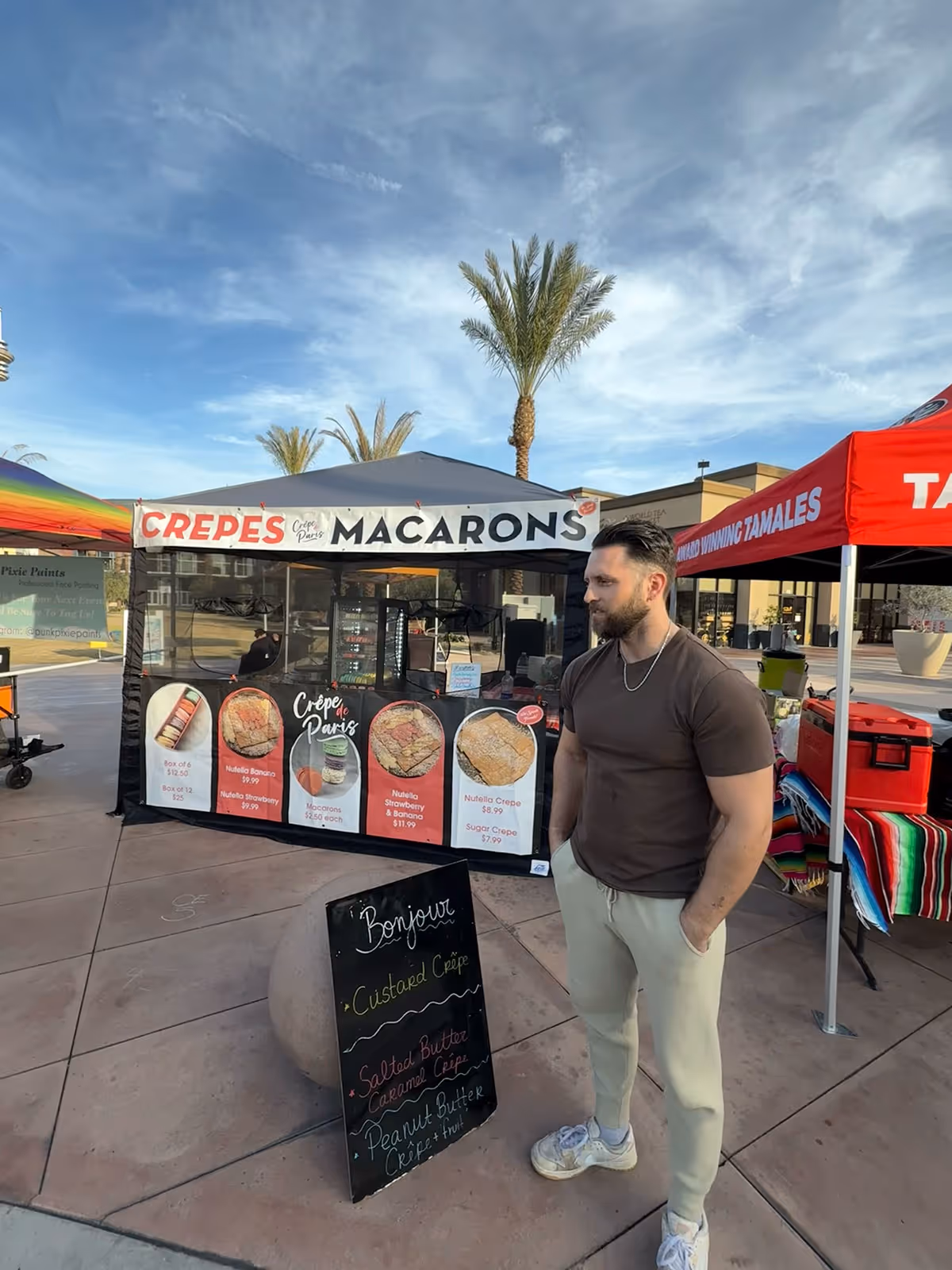 We are a family from France that brings the French culture through our baked goods. We serve fresh crepes and sell our famous macarons at the farmers market.